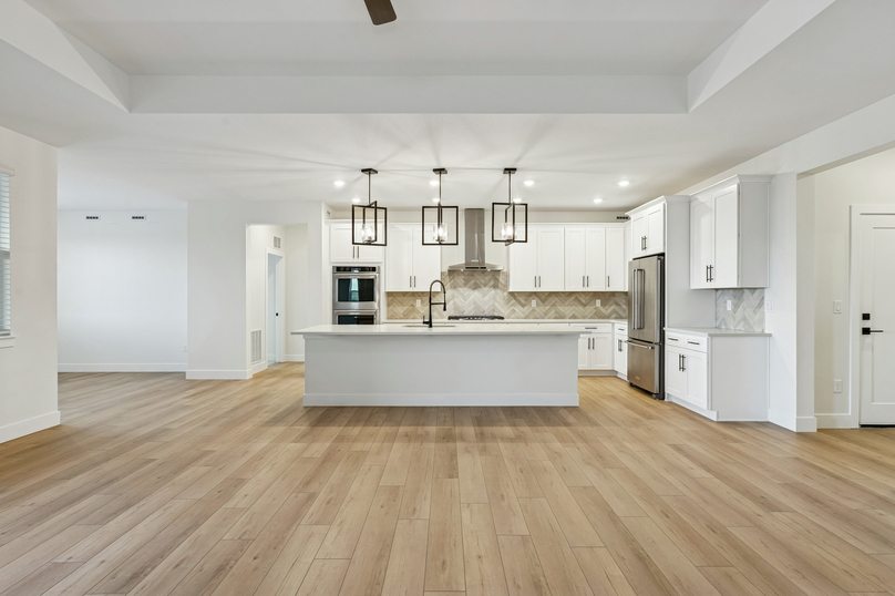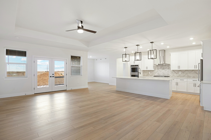 The Telluride floor plan offers a refined take on modern living with spacious interiors and upscale finishes throughout. At the heart of the home, a gourmet kitchen adorned with premium appliances and designer touches opens to a warm dining area and an expansive family room, creating the ideal setting for both quiet evenings and lively gatherings. The private owner’s suite serves as a serene escape, while two additional bedrooms and a versatile flex space provide endless possibilities for work, leisure or hosting guests. Completing the home is a covered patio that extends your living space outdoors, perfect for effortless entertaining in style.