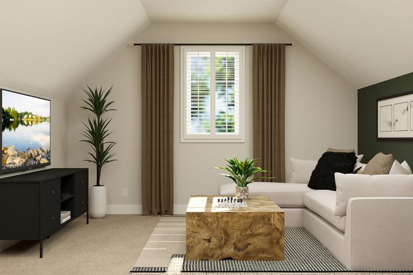 The well-equipped kitchen of the Tallulah features stainless steel kitchen appliances, 42” upper cabinets with crown molding and sprawling granite countertops. Enhanced by a large center island, this chef-ready kitchen includes plenty of counter and cabinet space in addition to a large walk-in pantry. Just around the corner you will find the mudroom with a built-in bench ideal for storing bags and backpacks.