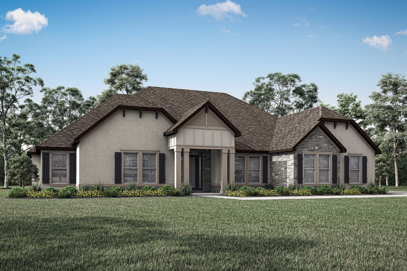 At the heart of The Mantle, the kitchen commands attention. A large angled island creates both architectural interest and a central gathering point, overlooking the breakfast area and spacious family room. The walk-in pantry offers generous storage, keeping the kitchen effortlessly organized. Just off the foyer, a formal dining room provides a refined setting for holidays and celebrations, while the media room tucked along the secondary bedroom hallway becomes the ultimate movie-night destination. A dedicated tech area near the master suite offers space for homework, remote work, or household organization. French doors open from the breakfast area to the covered outdoor kitchen, extending your living space outdoors and creating the perfect setting for year-round entertaining.