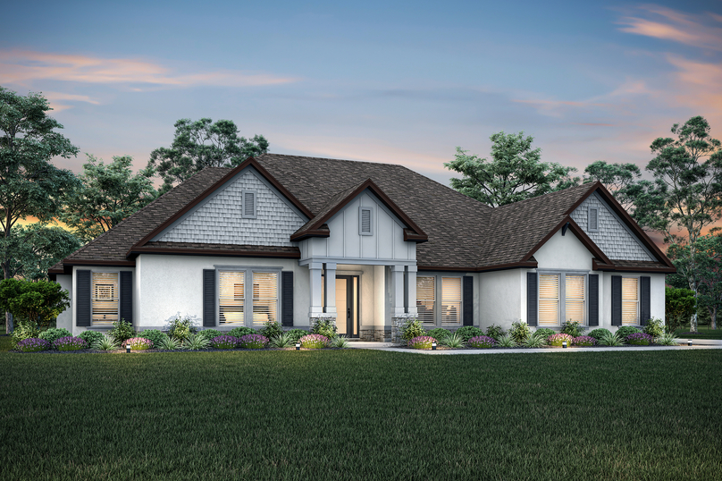 The Mantle is a statement home. Expansive, intentional, and designed for the way modern families truly live. From the moment you step through the foyer, you are drawn forward into an impressive open living space anchored by the family room and framed by natural light from the covered outdoor living area at the back of the home. With four bedrooms, three full baths, a formal dining room, dedicated media room, tech area, and a three-car garage, this plan layers function into every square foot. It’s a home that accommodates busy mornings, large gatherings, and everything in between without ever feeling crowded.