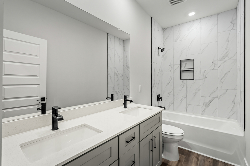 With Terrata Homes' included upgrades, the Johnson comes outfitted with stylish details and smart upgrades that bring comfort and style to every corner of your home. Quartz countertops, Moen® faucets, and LED flush-mounted ENERGY STAR lights elevate your spaces, while energy-efficient Whirlpool® appliances, like the refrigerator, stove, and microwave, are included from the start. Add in programmable thermostats, double-pane Low-E windows, and a Wi-Fi-enabled garage door opener, and you’ll see why the Johnson is a home that blends beauty, convenience, and peace of mind.