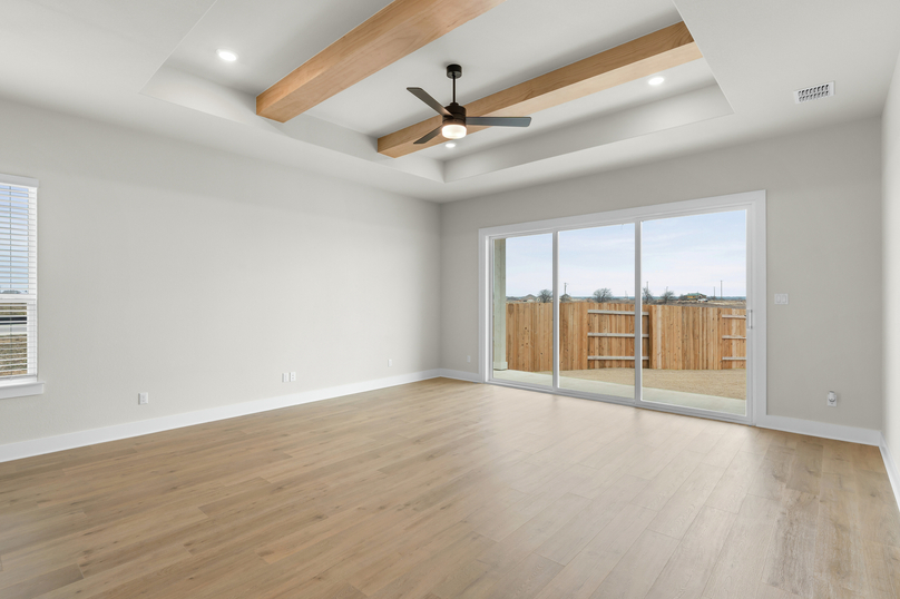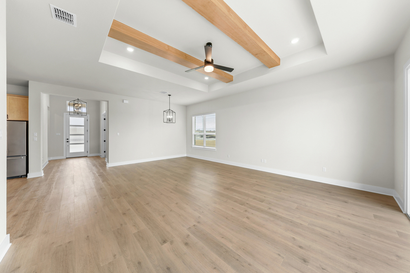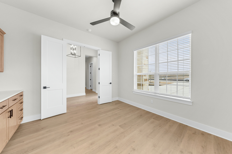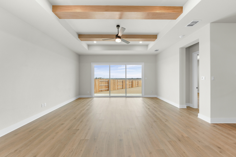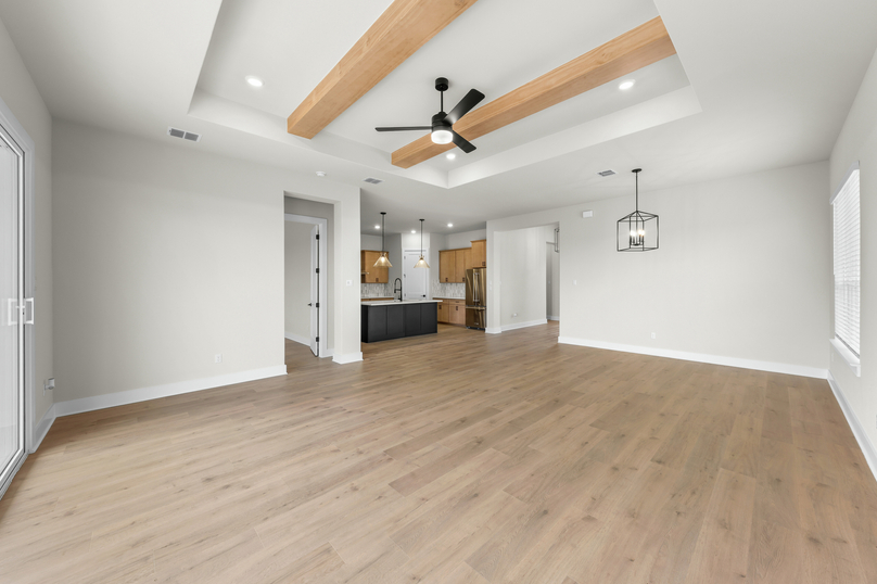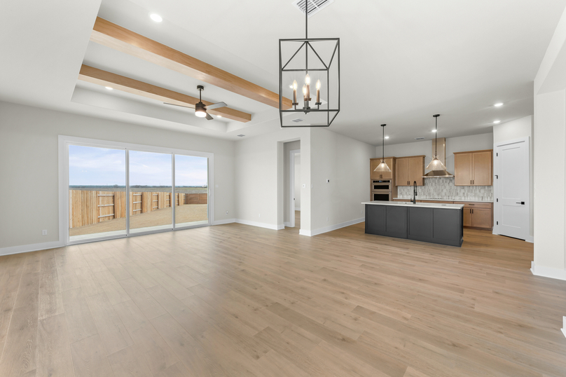 Thoughtfully designed for modern living, the Kingsley offers a perfect blend of style, comfort, and flexibility. This spacious single-story home features an open-concept layout that seamlessly connects the kitchen, dining, and family room, ideal for both everyday life and entertaining. A versatile flex room near the entry offers space for a home office, playroom, or lounge, while the private primary suite at the back of the home provides a peaceful retreat. With three secondary bedrooms, a covered patio, and smart storage throughout, the Kingsley delivers the space you need and the features you’ll love, all in a layout that just makes sense.