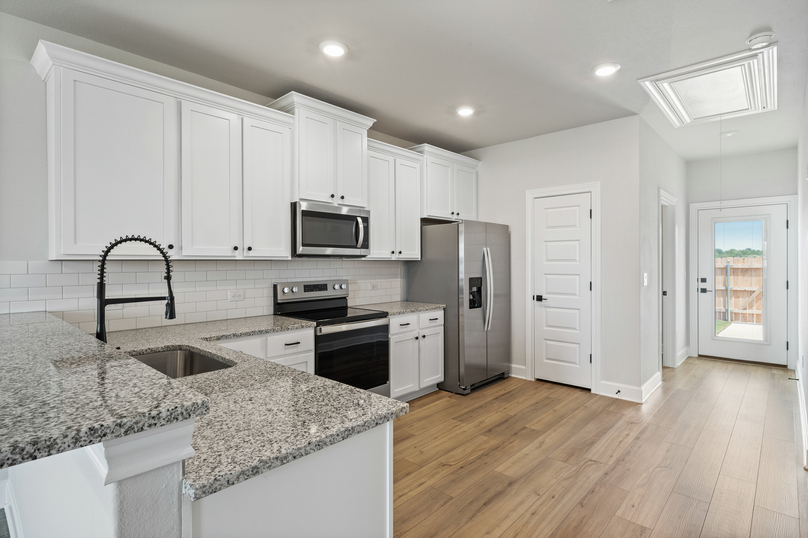 The well-appointed kitchen is the hub for family meals and socializing. The breakfast bar is a natural gathering spot providing a place to catch up as dinner is being prepared. With its stainless steel appliances, granite countertops, and white cabinets, the kitchen is a stylish focal point that adds to the overall ambiance of the Arc.