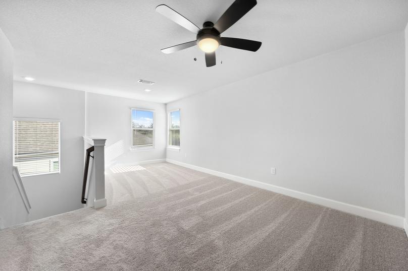 Spacious, open living is what you will find in the Yoakum floor plan. With a wide array of rooms and spaces, this floor plan is bound to have everything you need! This five-bedroom, three-and-a-half-bath home is truly the home every entertainer dreams of. The chef-inspired kitchen is the main focal point of the first floor, with extensive counterspace and sleek cabinetry. Off the entryway, you’ll find a study, perfect for a home office, formal dining room, or sitting area. Up the stairs, you also have a large game room, great for the kids to have their friends over, or to host a game night of your own. With so much room, the Yoakum is one of the most flexible floor plans with hidden gems around every corner.