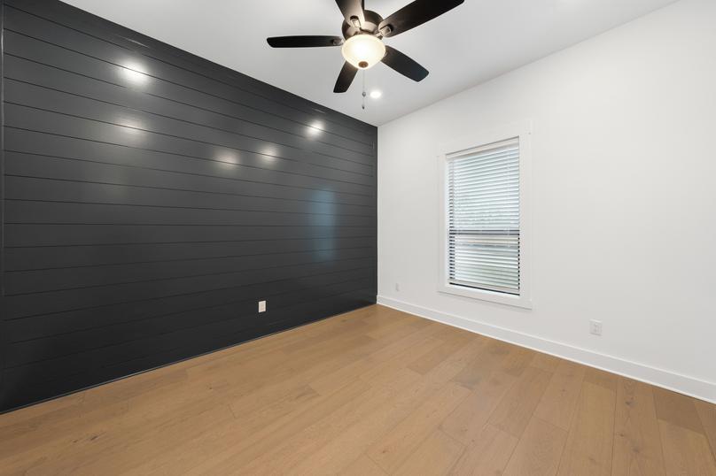 The master suite of the Garza provides the perfect space to relax and unwind after a long day. Designed to be a restful retreat, this space is highlighted by the high ceilings, natural light, and en-suite master bathroom. Inside the bathroom, homeowners will enjoy a gorgeous dual-sink vanity, a separate shower, a stunning soaker tub and access to the spacious walk-in closet.