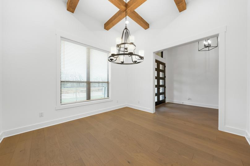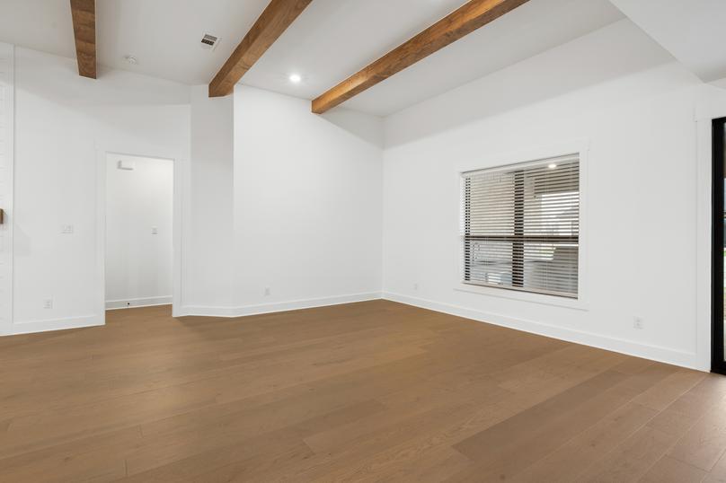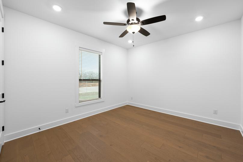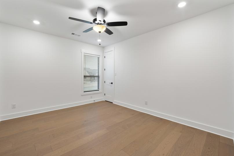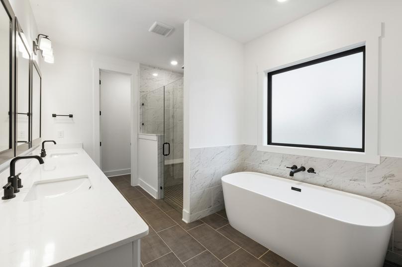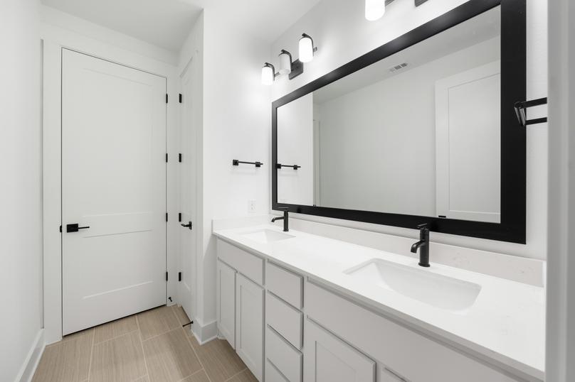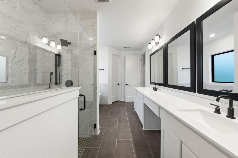 The master suite of the Garza provides the perfect space to relax and unwind after a long day. Designed to be a restful retreat, this space is highlighted by the high ceilings, natural light, and en-suite master bathroom. Inside the bathroom, homeowners will enjoy a gorgeous dual-sink vanity, a separate shower, a stunning soaker tub and access to the spacious walk-in closet.