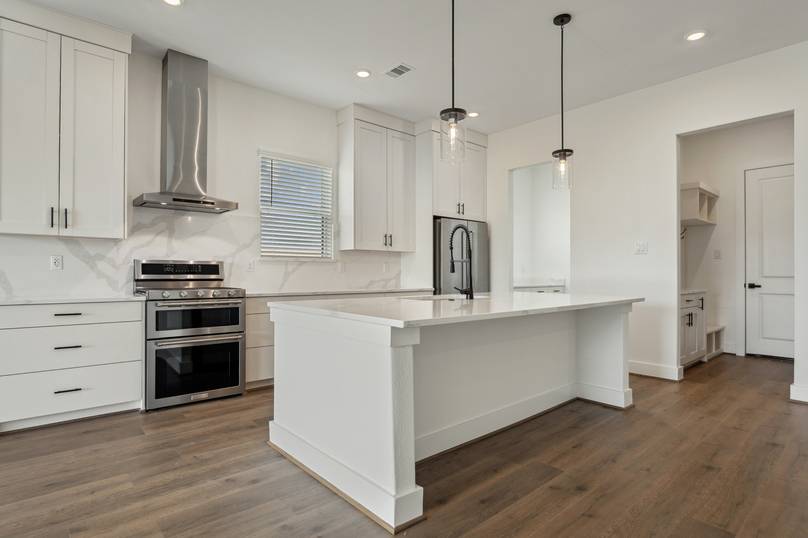 The heart of this home is its fully equipped kitchen, designed to bring out your inner chef. Complete with a full suite of stainless steel appliances, gorgeous quartz countertops, 60” upper wood cabinets with crown molding, and an oversized island, this space is perfect for everything from casual mornings to gourmet dinners.