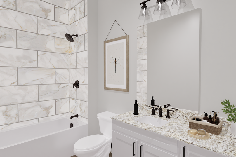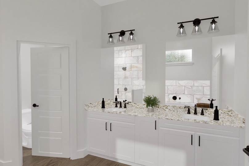 - Upstairs Jack-and-Jill bath with dual sinks