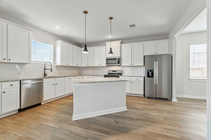 The Hendrie embodies the true feeling of home with an inviting porch and entryway. This single-story home showcases an open family room located directly off the fully equipped kitchen and dining area. An incredible master retreat is tucked in the back corner of the home providing a private escape to unwind at the end of the day. The two secondary bedrooms each have a walk-in closet and are located on the opposite side of the home from the master retreat. With its timeless and welcoming style, the Hendrie will accommodate your family's needs for years to come.