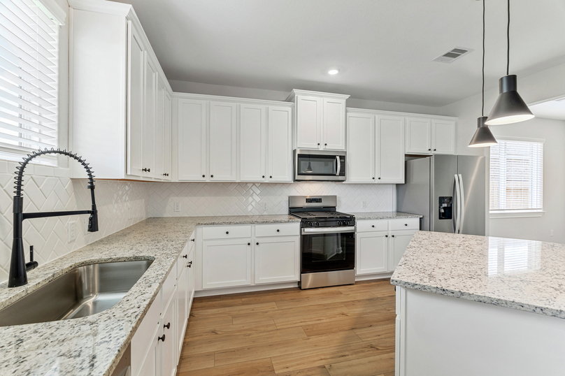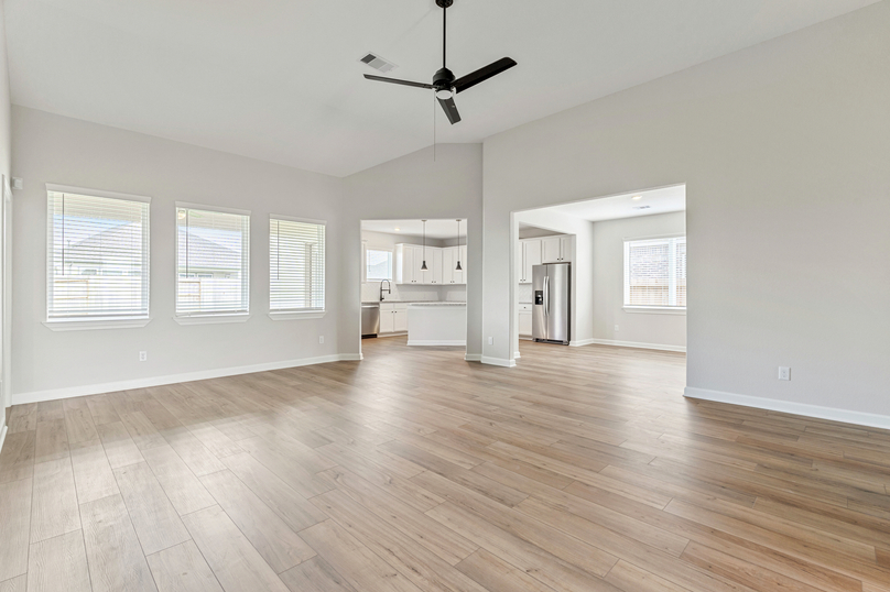 The Hendrie showcases an incredible layout allowing you to easily flow from room to room. The large family room is located at the heart of the home and offers the ideal space for gathering with friends and family. Large windows along the back of the home offer views of the covered outdoor living space and your huge back yard. You will love having this space to relax after a long day or to catch up with your neighbors!