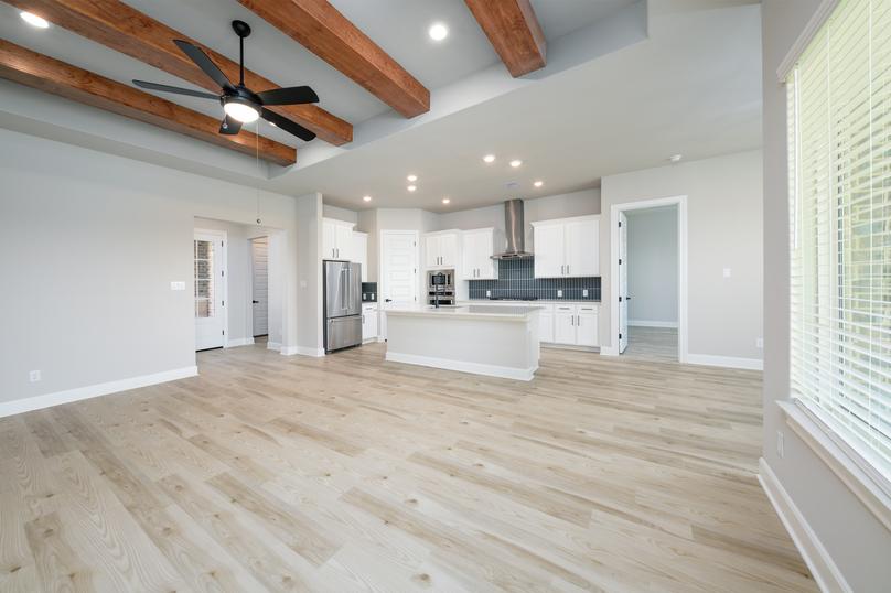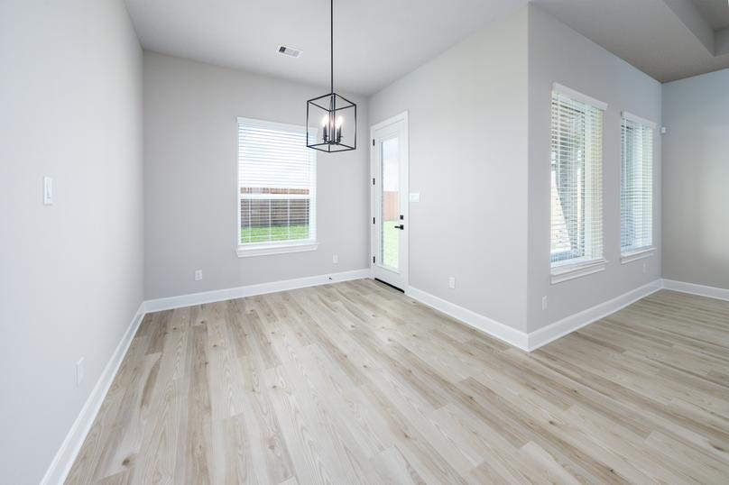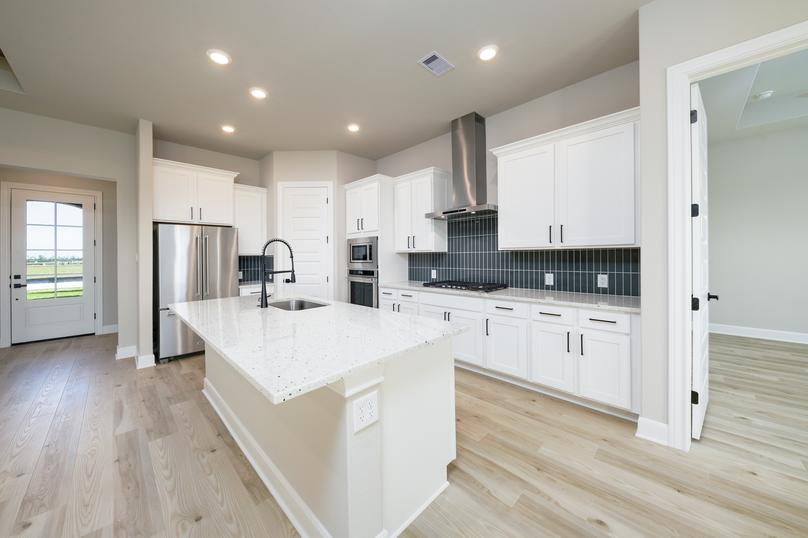 Whether it’s a quick meal, formal dinner, or a celebration, the Iris plan offers dining areas to accommodate your desires. Enjoy a charming dining area that is open to the kitchen and offers brilliant backyard views. The kitchen island is a major focal point, open to the family room providing the ideal space to set up snacks for watching your favorite team play ball.