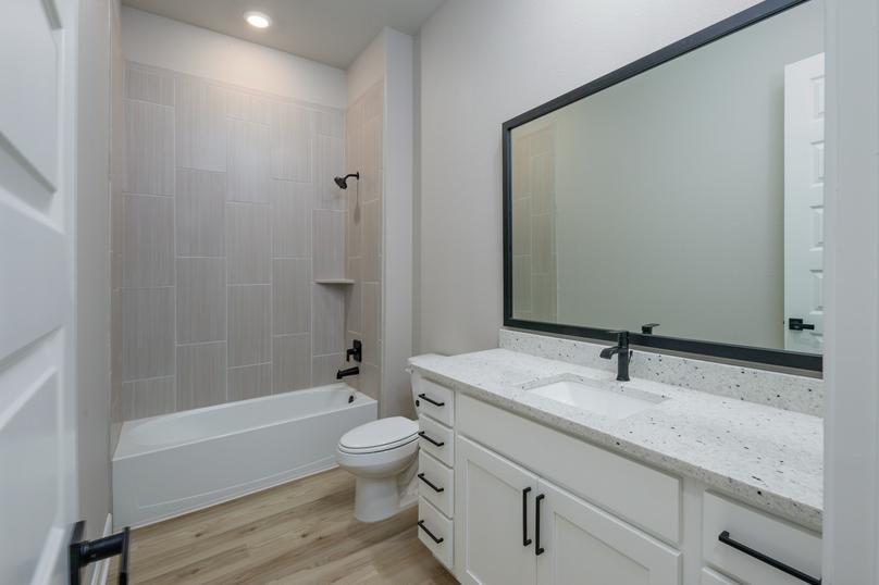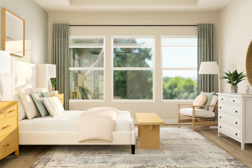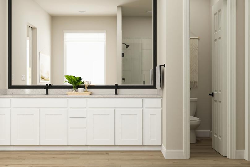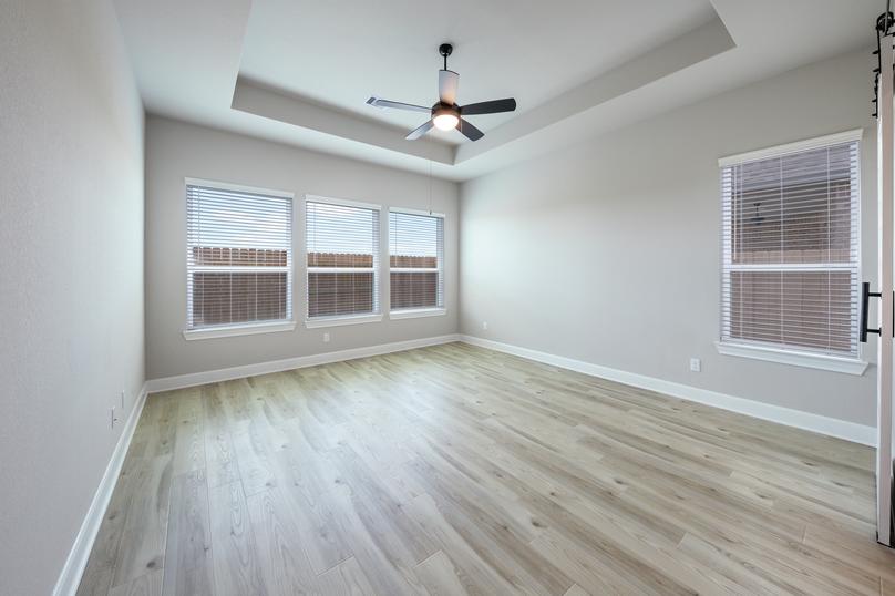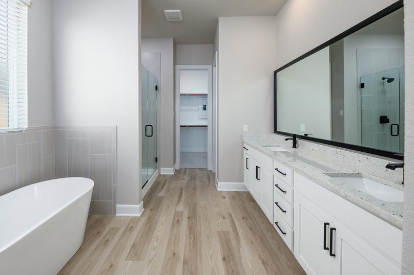 The master retreat of the Laurel plan is the perfect space to begin and end each day. Tucked away from the additional bedrooms, the master suite boasts beautiful high celings and plenty of natural light with views into the large back yard. The en-suite master bath showcases a gorgeous dual-sink vanity, glass-enclosed shower, a stunning free-standing tub and access to the spacious walk-in closet.