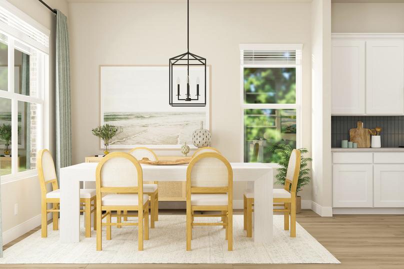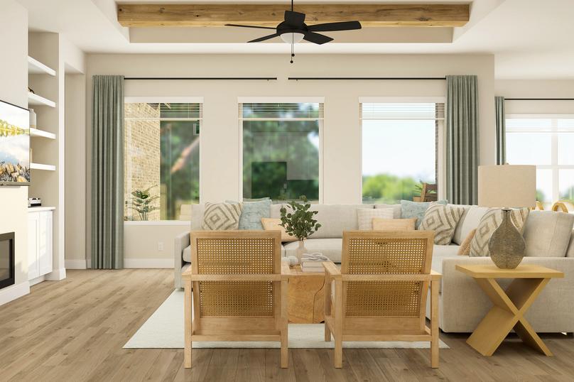 The Laurel floor plan has a spacious, open layout that has been thoughtfully designed with your needs in mind. The gorgeous chef-ready kitchen is open to the dining area and family room, creating a seamless open layout. Additionally, this home has a flex room perfect for a private home office.