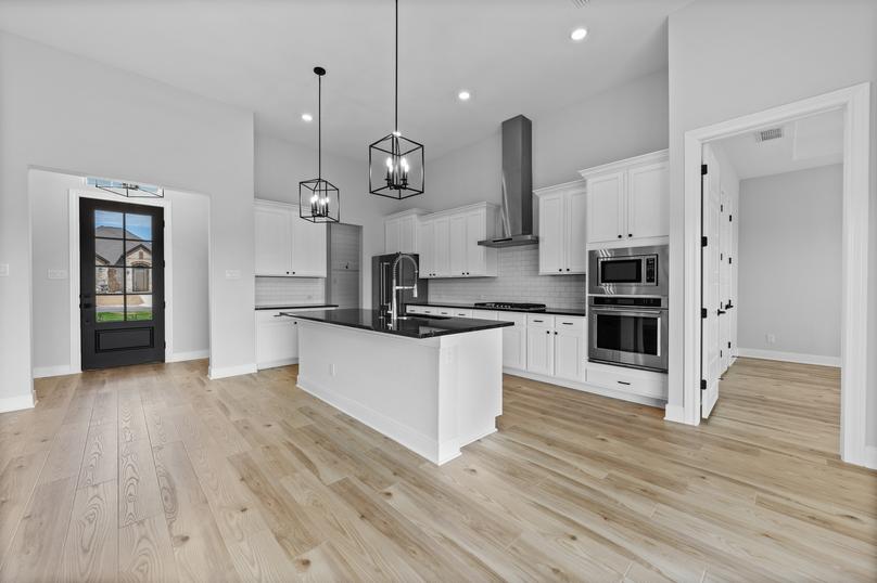 The Belzer plan was designed to give you options when hosting your friends and family, or simply enjoying family time at home. Featuring gorgeous wood floors, soaring ceilings and large bright windows, the family room provides the perfect setting for gatherings, large or small. Enjoy family dinners in the dining area, or outdoors on the covered back patio.