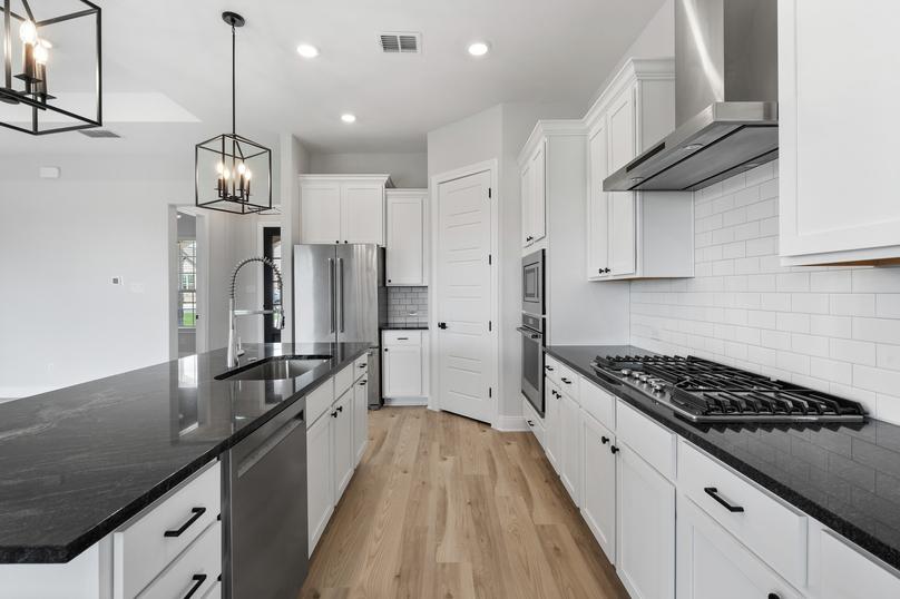 The well-equipped kitchen of the Chester plan features stainless steel kitchen appliances, 42” upper cabinets with crown molding and sprawling granite countertops. Enhanced by a large center island, this chef-ready kitchen includes plenty of counter and cabinet space in addition to a large walk-in pantry. Just around the corner you will find the mudroom with a built-in bench ideal for storing bags and backpacks.