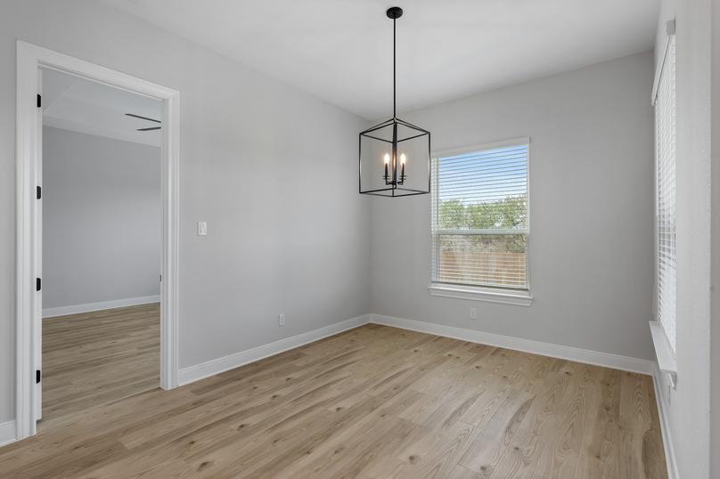 Located within the unparalleled community of Potranco West is the single-story Chester plan. This home features three bedrooms, two bathrooms, providing all the space your household needs to live comfortably. In addition to the generously-sized secondary bedrooms and secluded master retreat, the Chester boasts an incredibly open layout with a spacious family room, fully equipped kitchen, dining area, additional flex room, and more. The kitchen is sure to be a talking point with stunning white cabinetry, a large granite island, and stainless steel appliances. The Chester plan offers you an opportunity for extraordinary living.