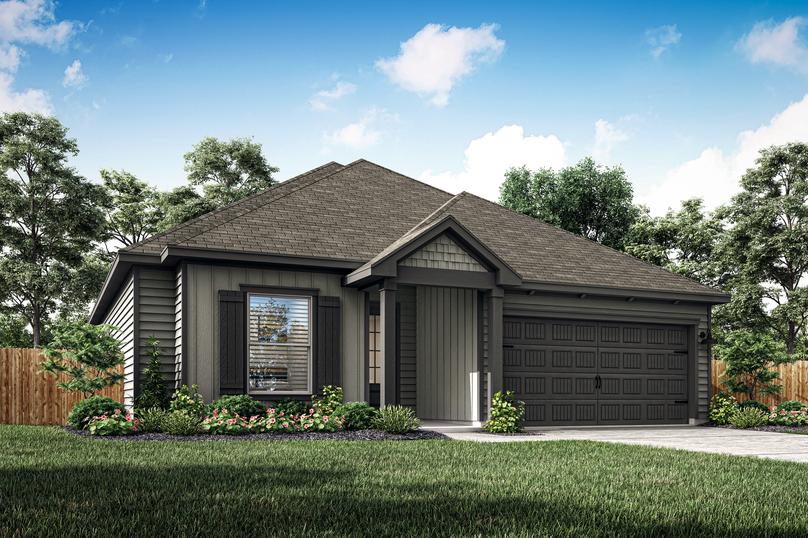 The master retreat of the Crockett plan is the perfect space to begin and end each day. Tucked away from the additional bedrooms, the master suite has large windows that flood the room with natural light. The en-suite master bath showcases an oversized dual-sink vanity, a walk-in shower, a private restroom and access to an impressive walk-in closet.