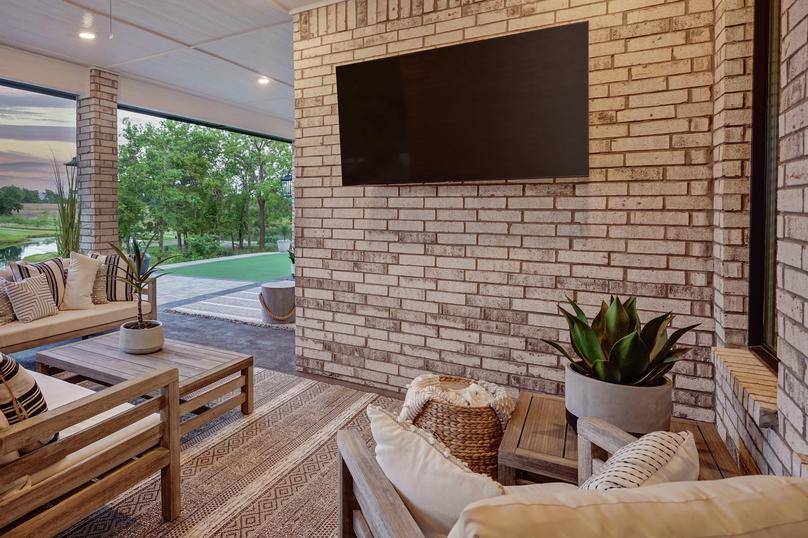 • The covered outdoor living area is the perfect space to unwind.